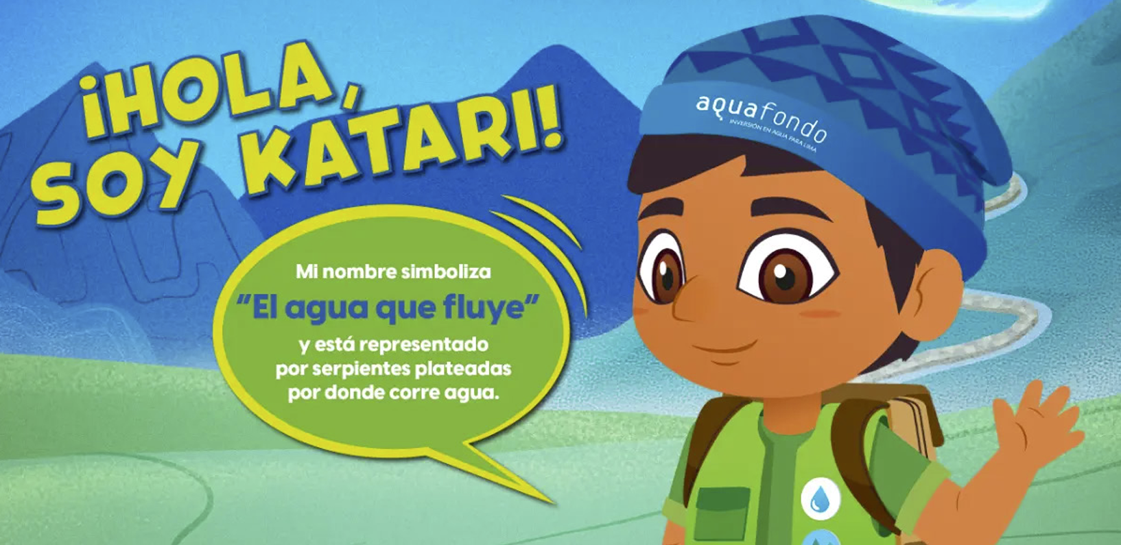 Katari, embajador digital de Aquafondo, es un personaje diseñado para comunicar conceptos de sostenibilidad hídrica.